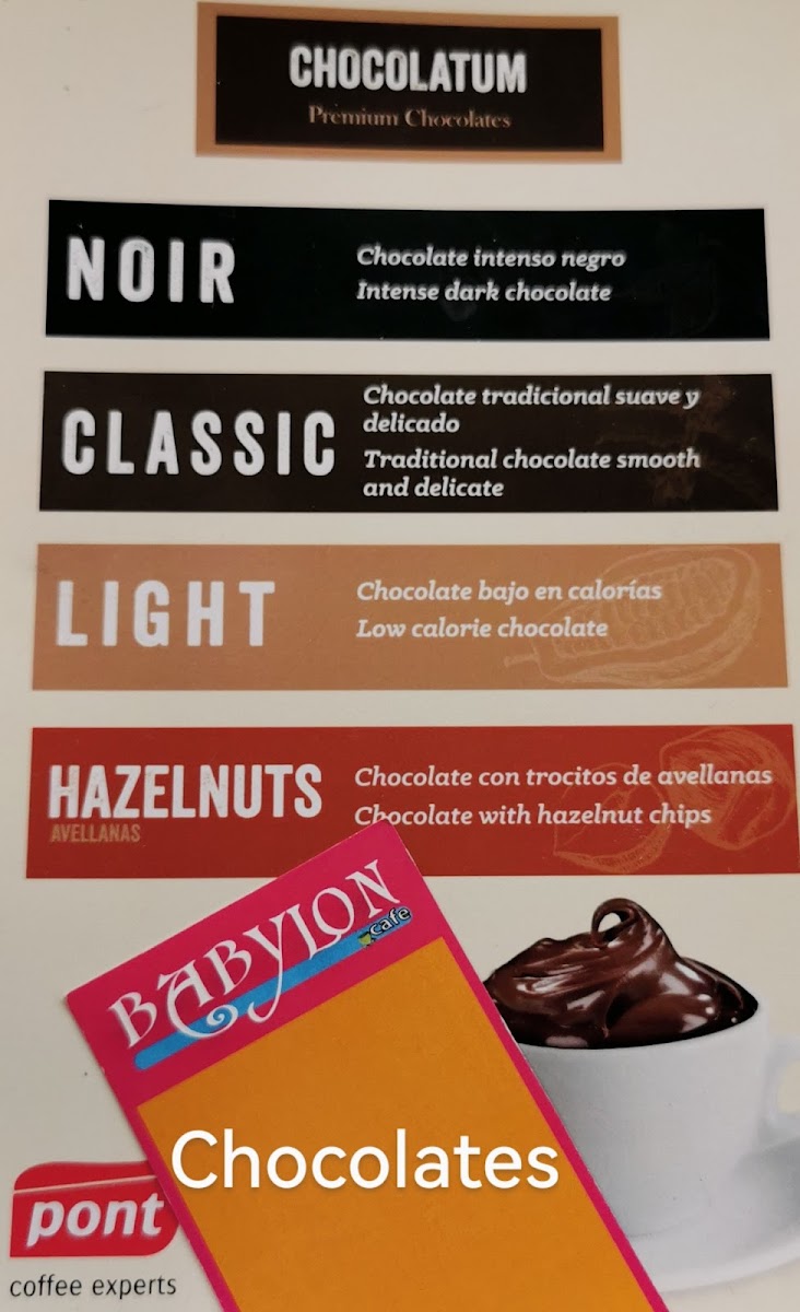 The menu at Babylon Cafè offers a selection of beverages and light food options suitable for breakfast, coffee breaks, and casual meals throughout the day. Visitors can find a variety of coffee and other drinks, including cerveza (beer), as well as light snacks and pastries such as croissants.